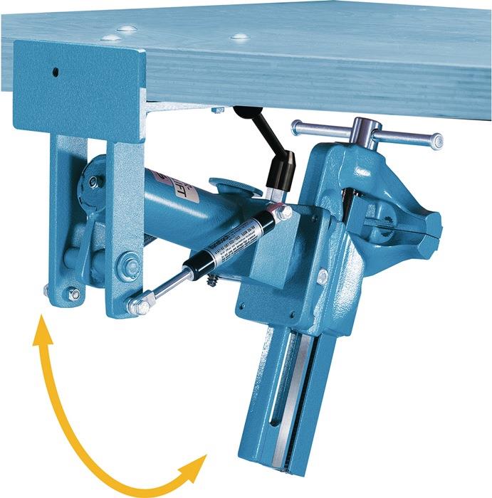 - ermöglicht stufenlose Höhenverstellung des Schraubstocks um 175 mm und Drehung um 360°
