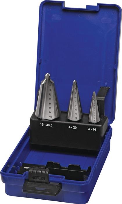 Blechschälbohrersatz 3 14 / 4 20 / 16 30,5 mm 3 teilig Kunststoffkassette HSS