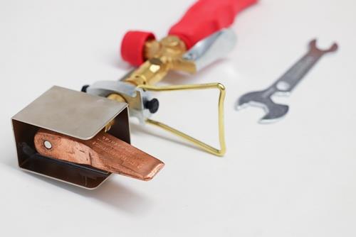 - mit robustem Kolben aus Kupfer - erwärmt durch die Flamme und schmilzt das Lötzinn