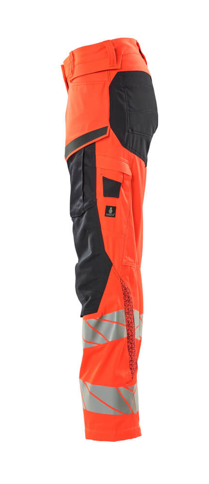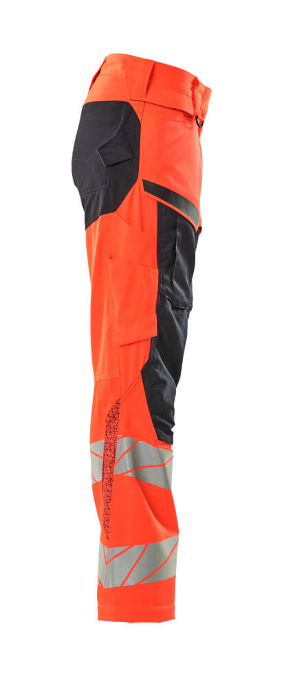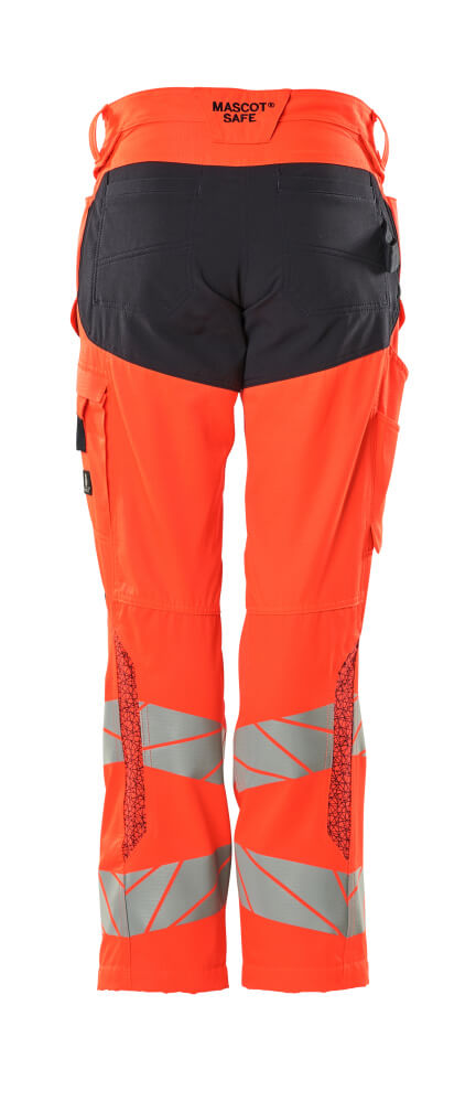 Damen-Passform DIAMOND Hose mit Knietaschen ACCELERATE SAFE Hi-vis Rot/Schwarzblau 76C40
