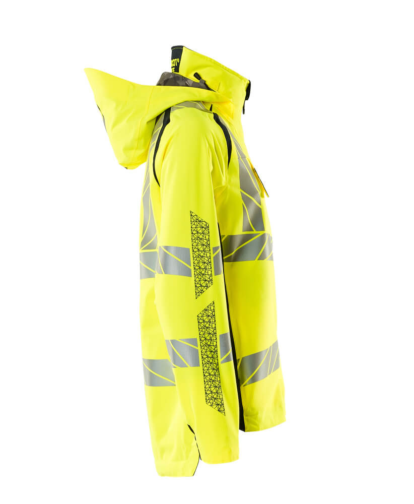 - Fluoreszierend und mit Reflexschulterstreifen sowie schräg verlaufenden Reflexen.