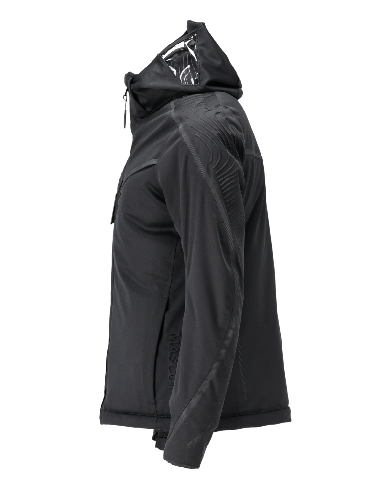 - Die Kapuze hat seitlich transparente Kunststoffeinsätze.