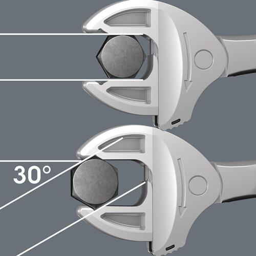 - die benötigte Größe stellt sich beim Ansetzen an der Sechskant-Mutter oder -Schraube stufenlos von selbst ein