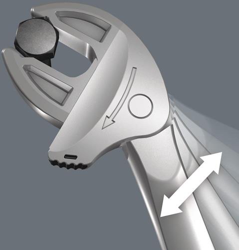- durch die stufenlos und parallel geführten Backen werden mehrere Maulschlüssel-Einzelabmessungen ersetzt