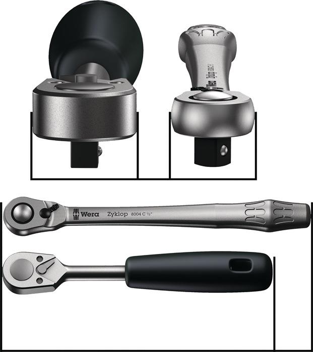 Produktinformationen "Durchsteckknarre Zyklop Metal push 3/8 ″ 38 Zähne Länge 222 mm mit unverlierbarem Durchsteckvierkant WERA"