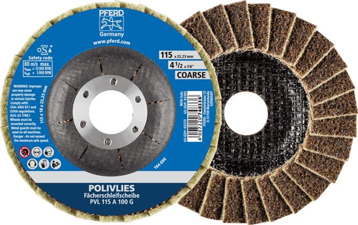 Produktinformationen "Fächerscheibe POLIVLIES Korund A 115 mm grob 13300 min-¹ gelbbraun"