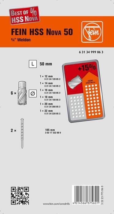 Kernbohrersatz Best Of 8-teilig Ø 12-22 mm HSS Schnitttiefe 50 mm Weldon FEIN