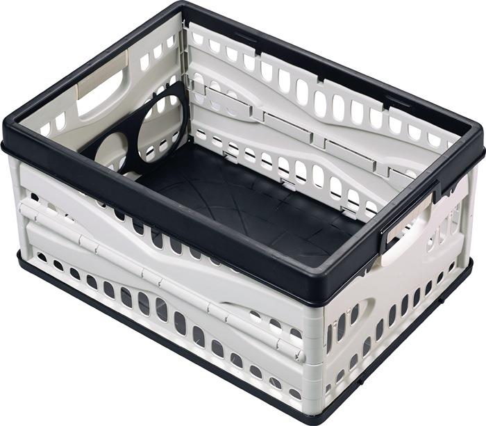Produktinformationen "Klappbox L485xB345xH230mm Inhalt 35 l mit 2 Griffen und Flaschenhalter schwarz-grau LOCKWEILER"