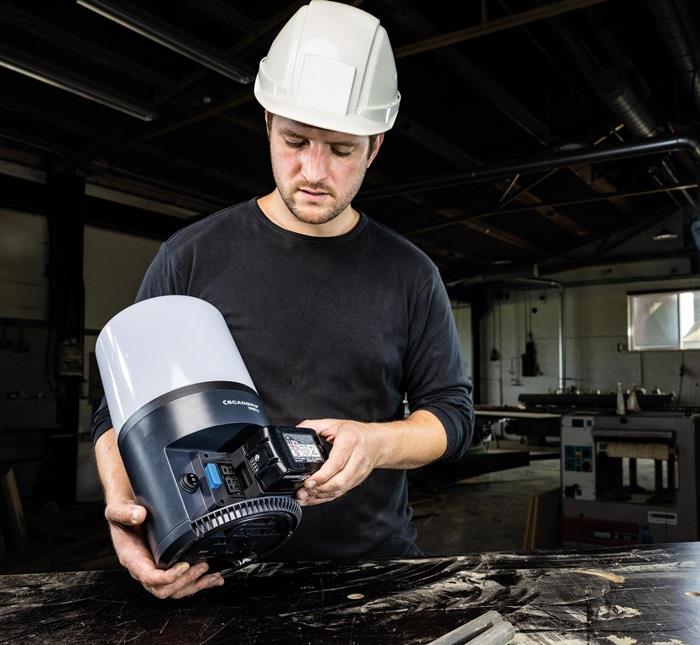 - 360°-Arbeitsleuchte mit 6000 Lumen für 18-V-Akkupacks