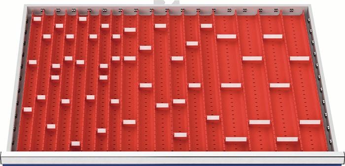 Produktinformationen "Muldeneinsatzset Fronthöhe 50 - 75 mm für Schrankbreite 900 mm 24 Einsätze mit 47 Trennwänden"