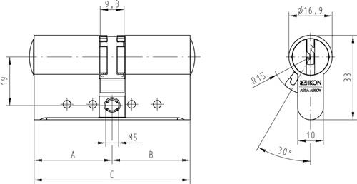 - Wendeschlüsselsystem mit 11 Stiftzuhaltungen Baukastensystem zur einfachen und schnellen Längenänderung Zylinder Messing Standard Oberfläche matt vernickelt (OF=MV) Zylindergrundlänge 61 mm (C) - A/B (L=30/30) - weitere Baulängen lieferbar Standard Schließbartstellung (SST=30°) Anbohrschutz Klasse 2 (AB=2), zusätzliche seitliche Abtastungen und mit Sicherungskarte Balliger Zylinderkernkopf mit verstärkter Schlüsselführung Schließbart aus bruchfestem, korrosionsbeständigem Neusilberprofil Kernstifte aus verschleißfester Sonderbronze Geschütztes Schlüsselprofil mit Sicherungskarte Weitere technische Eigenschaften: