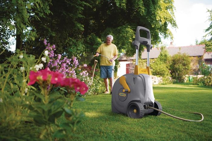- leichtes, sauber und ordentliches Aufrollen des Schlauches mit seinem innovativen "Easy Rewind" Aufroll System mit automatischer Schlauchführung