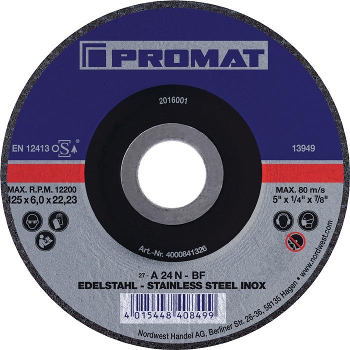 Produktinformationen "Schruppscheibe INOX gekröpft INOX Bohrung 22,23 mm PROMAT 115 mm 13300 min-¹"