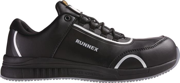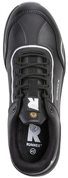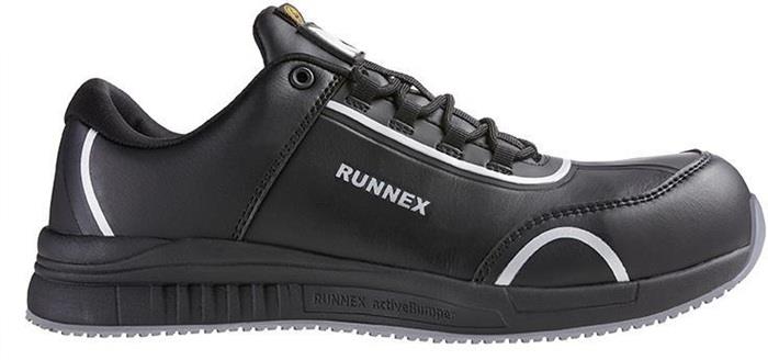 - Materialzusammensetzung: Obermaterial: Hydrophobiertes Microfasermaterial, TPU-Besätze, Futter: RUNNEX® SPORTY-Funktionsfutter, Fersenfutter: RUNNEX® SOFTtouch, Sohle: Gummi-Laufsohle mit Phylon-Zwischensohle, Dämpfung: RUNNEX® activeBumper, Zehenschutzkappe: RUNNEX® Composite-Protection, Durchtritthemmung: Metallfrei, Fußbett: Ganzflächige Einlegesohle aus Poliyou®