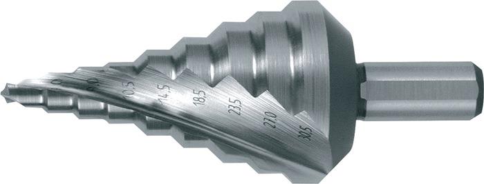 Produktinformationen "Stufenbohrer 5,3 - 30,5 mm 5,3 / 7 / 9 / 10,5 / 14,5 / 18,5 / 23,5 / 27 / 30,5 mm Kernloch 79 mm 9 14"