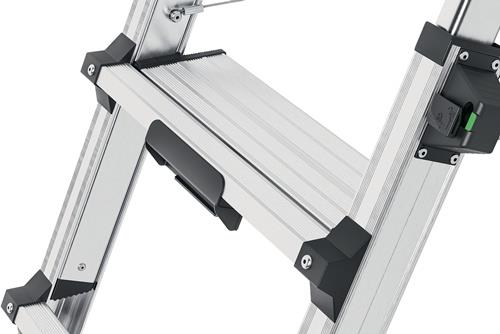 - Stufen-/Sprossen-Kombination mit rutschsicherer, geriffelter Auftrittsfläche