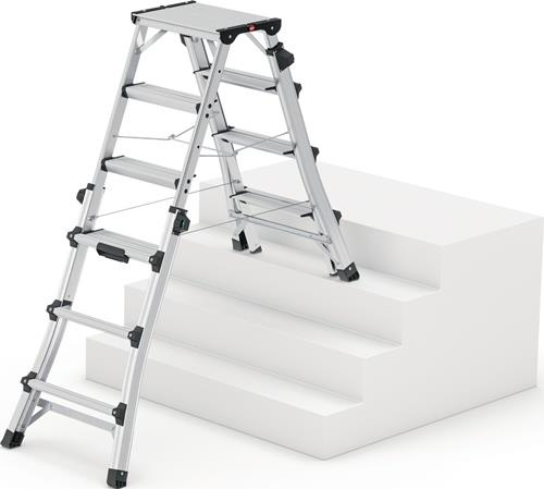 - Steig- und Stützholme auf 2 x 4, 2 x 5 oder 2 x 6 Stufen einstellbar