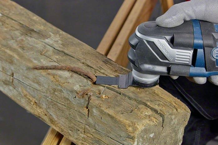 - weiche Kunststoffe und Paneele mit Kunststofflaminierung. Die Bimetallverbindung aus Blatt aus HCS-Stahl (Stahl mit hohem Kohlenstoffgehalt) und Zähnen aus HSS-Stahl (Schnellarbeitsstahl) ist verschleiß- und hitzeresistent und gewährt dem Blatt beim das Schneiden von ungehärtetem Metall und abrasivem Material eine hohe Lebensdauer. Das Starlock-Aufnahmesystem ermöglicht einen schnellen Blattwechsel ohne Blattberührung in drei Sekunden. Das Aufnahmesystem ermöglicht durch seine dreidimensionale enge Passung maximale Kraftübertragung zwischen Maschine und Zubehör.