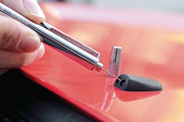 - integrierte Düseneinstellnadel (durch Schutzkappe gesichert)