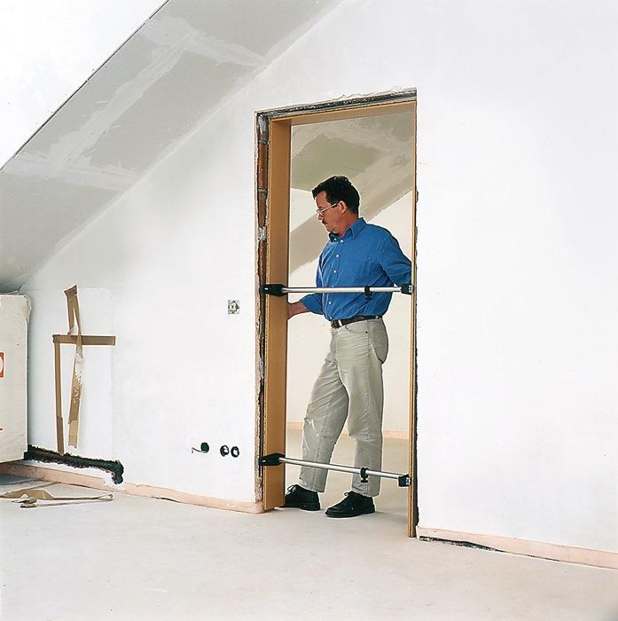 - teleskopierbares Aluminium Rundrohr mit Festestellschraube zum genauen Arbeiten, fixiert und stützt Türfutter beim Ausschäumen der Mauerfuge schonend, Klemmteile an den Spannflächen sichern die Strebe im Futter Verkaufsmenge = 1 Strebe