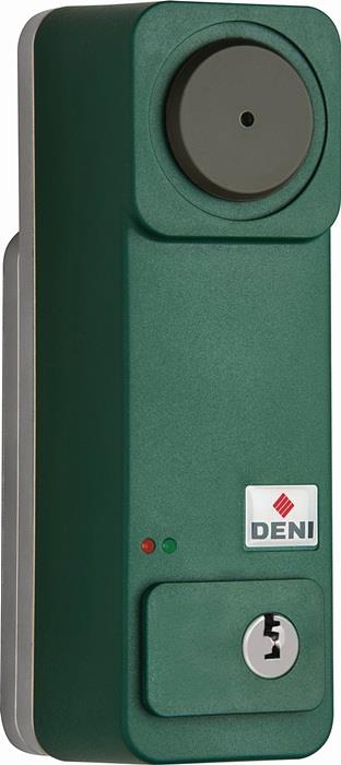 Produktinformationen "Türwächter für Einhandbedienung vorgerichtet für Profilhalbzylinder grün lackiert Voralarm DENI"