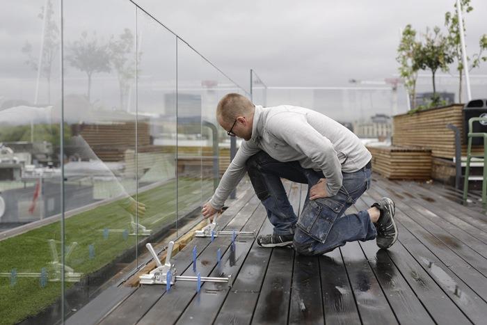 - Einhandwerkzeug zum kontrollierten Heben und Senken bei der Tür- und Fenstermontage etc., sowie zum Spreizen und Spannen bei der Laminat- und Bondendielenverlegung Belastungsgrenze 150 kg